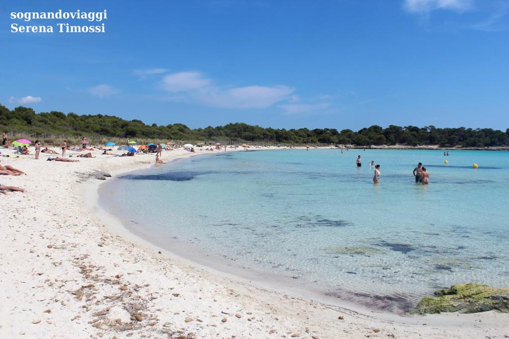 Risalendo la costa, ci siamo recati alle spiagge di Son Saura, che occorre attraversare a piedi, seguendo un percorso panoramico che regala scorci particolari, quasi lunari, se si vuole raggiungere la caletta di Es Talaier. Le spiagge di Son Saura sono Platja d’en Banyul e Bellavista: la prima è quasi interamente coperta da un tappeto d’alghe in alcuni periodi dell’anno, pertanto la abbiamo solo oltrepassata, mentre la seconda è una sottlie striscia di sabbia fine come borotalco. Alle spalle di Bellavista, un pontile ricollega al Camin de Cavalls e seguendo il sentiero si giunge ad una caletta minuscola dalle acque spetacolari: Es Talaier. Siamo a mezz’ora circa dal parcheggio e l’atmosfera è idilliaca!
