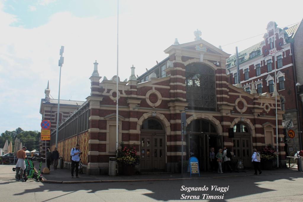 Per spostarsi a Kauppatori, ovvero nella piazza del mercato, si impiega solo qualche minuto. E’ una piazza vivace, che rappresenta il cuore pulsante della città. Qui troverete una fontana con una sirena (Havis Amada), un obelisco sormontato da un’aquila, bancarelle gastronomiche e di souvenir. Ci siamo fermati a pranzare al Vanha Kauppahalli, ovvero al mercato coperto, e vi consiglio di fare altrettanto: si spende poco, in rapporto ai prezzi della città, e si mangia bene. Io ho scelto del freschissimo salmone, mentre Enri ha optato per una vellutata che era semplicemente deliziosa (ebbene sì, l’ho assaggiata anche io perché aveva un aspetto invitante e cremoso). L’interno del mercato è caratteristico e vale un giro anche se avete già pranzato.