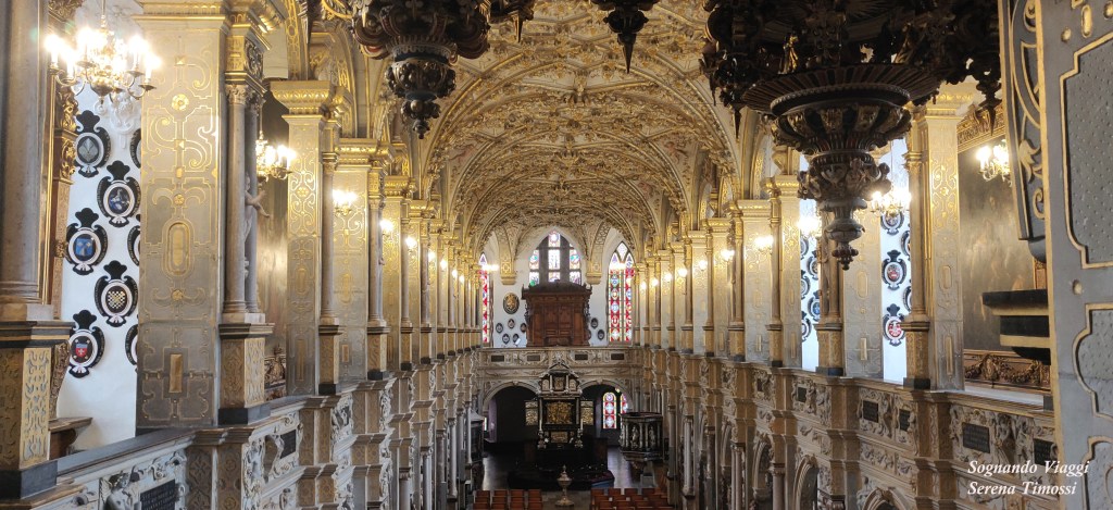 La posizione del castello è unica e molto suggestiva: posto su tre isolotti al centro del lago, fin dal primo impatto esterno lascia stupefatti. L’ingresso avviene attraverso una porta circondata dal fossato, che si apre sul cortile interno. Ogni stanza, tra arazzi, mobilio antico e dipinti, lascia attoniti, ma senza dubbio a lasciarvi senza fiato sarà la splendida Cappella dell’Incoronazione, risalente al 1617. Un tripudio di oro e marmo che si salvò dall’incendio del XIX secolo ed è caratterizzata dalla presenza di quattro organi e dal susseguirsi di blasoni di famiglie reali e nobiliari di diverse parti del mondo. La Cappella è anche la Cappella dei Cavalieri dell’Ordine dell’Elefante e ospita armi e abiti del Diciassettesimo secolo.